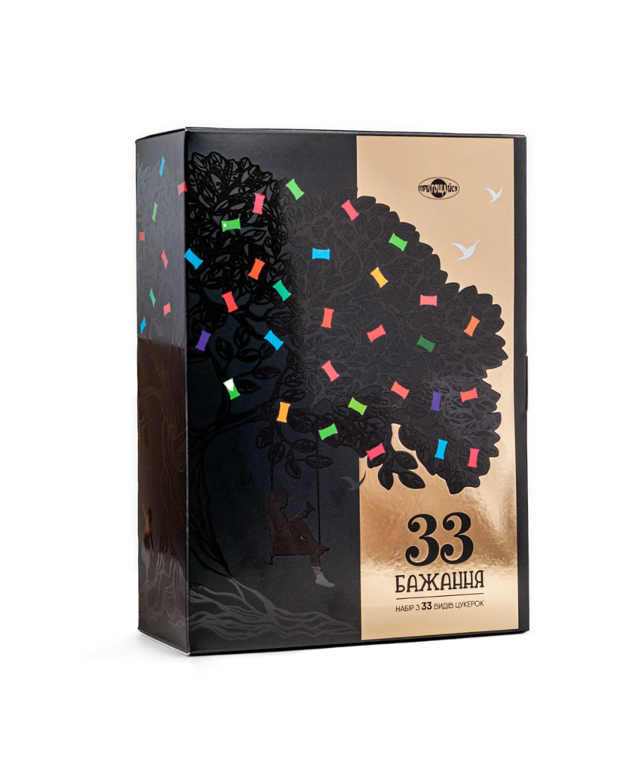 Die „33 Wünsche“ Pralinenbox ist das perfekte Geschenk für jeden Anlass! Mit ihrer eleganten schwarz-goldenen Gestaltung zieht sie alle Blicke auf sich. Die Box ist wie ein Buch gestaltet, das nur darauf wartet, entdeckt zu werden.