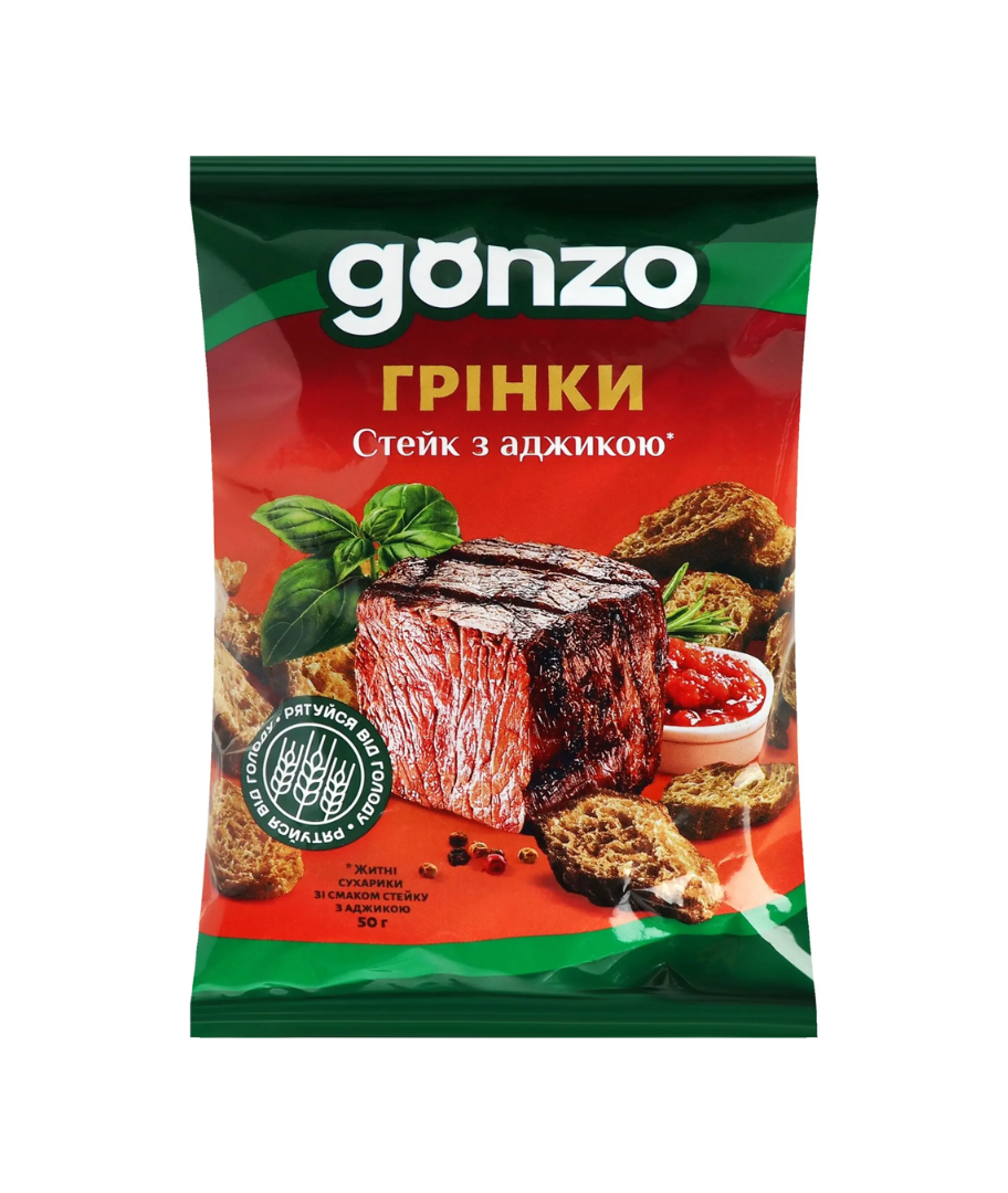 Erlebe den intensiven Geschmack von Steak und pikantem Adjika in jedem knusprigen Roggencrouton von Gonzo. Diese leckeren Croutons kombinieren die perfekte Knusprigkeit mit einem kräftigen und unvergesslichen Geschmackserlebnis.