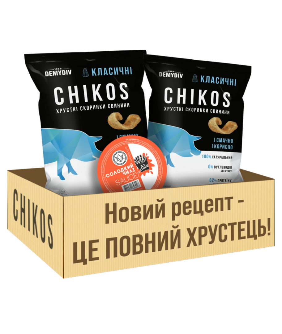 CHIKOS sind die klassischen Schweinefleisch-Snacks mit unvergleichlichem Geschmack, frei von Kohlenhydraten und Gluten, und reich an Proteinen und gesunden Fetten.